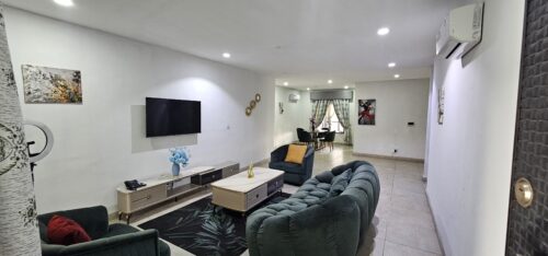 This expansive apartment offers a seamless blend of sophistication and functionality, featuring a spacious parlour, dining area, 3 Bedrooms en-suite and a fully equipped modern kitchen. Whether you’re staying for business or leisure, this apartment provides the perfect environment for relaxation, entertainment, and productivity. Enjoy breathtaking city views, high-speed Starlink internet, and access to all the premium amenities that NDDC Clubhouse has to offer.